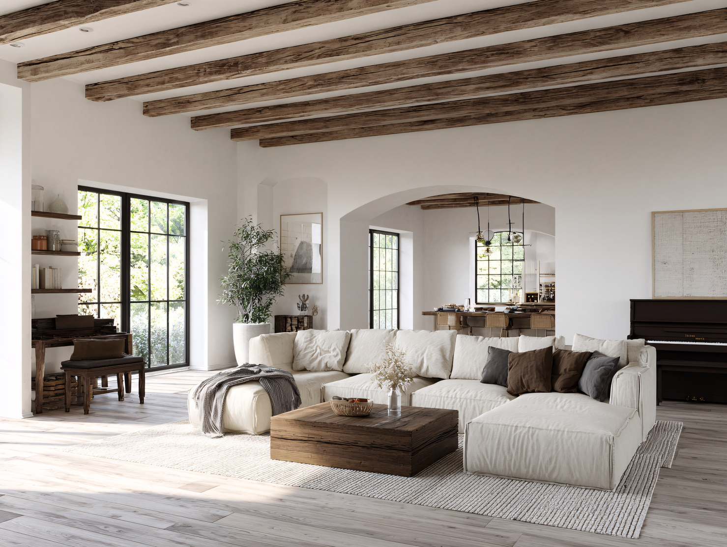 - Wood: furniture and beams