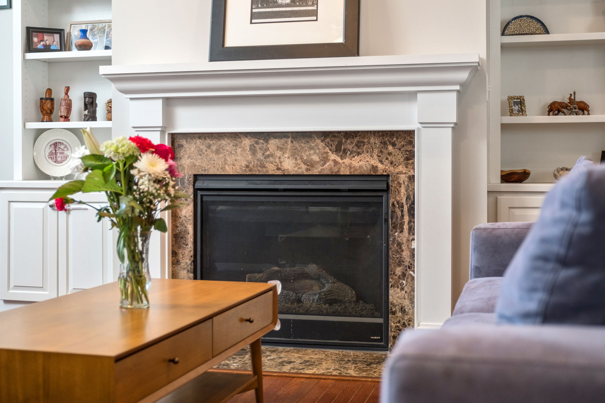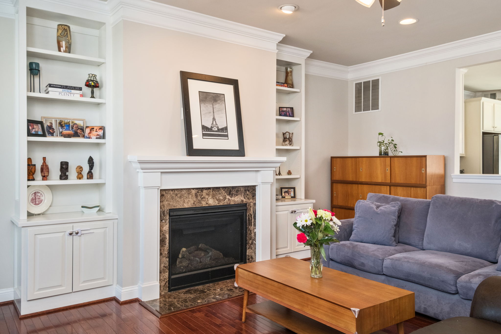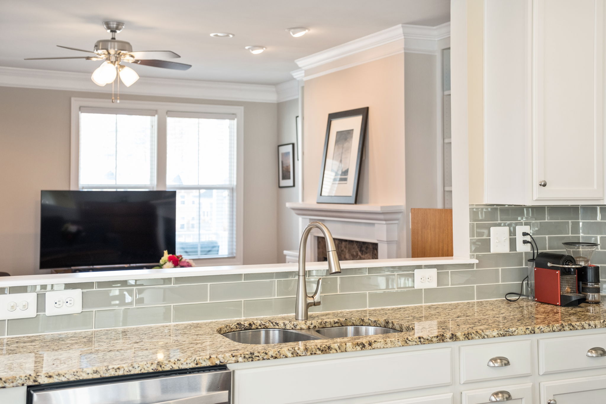 Two additional bedrooms, full bath, and convenient laundry complete the top floor. The main level showcases an open-concept design with hardwood floors, crown molding, gas fireplace, and abundant natural light throughout. The kitchen has tons of cabinet and countertop space plus a gas range ready for the home chef. The entry level includes a private bedroom suite ideal for guests, a home office, or rec room. It’s all capped off with a two-car garage.